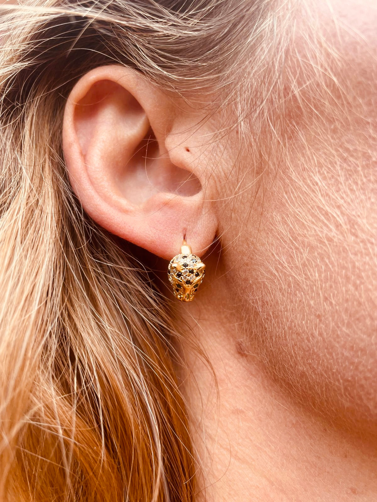 Embrace the spirit of the wild with our Jaguar Medallion Earrings, a striking blend of strength and elegance. Each medallion features an intricately detailed jaguar motif, symbolising power and grace, set against a gold diamante finish.